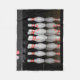 A small fleece blanket featuring a photo of a rack of bowling pins.