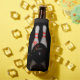 A bottle cooler featuring a photo of two bowling pins with a ball about to knock them down.