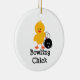 A cute yellow chick next to a pair of pins and a bowling ball on Bowling Chick t-shirts, tees, stickers, mugs and more novelty merchandise and apparel that make a cute gift for your bowling team and friends. Click on the following link to see all of our cute Chrissy H.