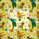 Craft up bowling themed gifts with this patterned fabric. The material has cute cartoon illustrations of dinosaurs in bowling shirts bowling against a light yellow background.