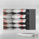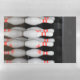 Dry erase sheets featuring a photo of a bowling pins.