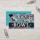Colorful arty Learn To Bowl business cards in turquoise, aqua, red, yellow. Bowling instructor business cards.