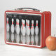 This is a standard metal lunchbox that appears to work just fine. We designed this box ourselves with an uploaded photo and custom text on the front and back. It looks absolutely beautiful except the front of the lunchbox is not centered like it shows in the photo. The print borders don't align with the inset flat part of the box where the preview photo online showed it perfectly centered in there. The back looks nice and centered though.