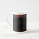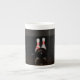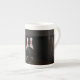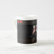 A Bone china Mug featuring a photo of two bowling pins about to be knocked down by a bowling ball.