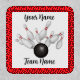 A stylish bowling patch that can be personalized with your choice of colors and fonts, featuring your name and team name prominently displayed for a truly unique look on the lanes. Message for a custom order.