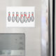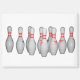 A magnet with a photo of bowling pins. The black background of the original photo has been removed, so it is a photo of pins on a white background, something you don't see.