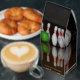 A bag of coffee featuring photos of bowling pins and a bowling ball.