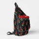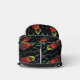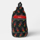 This bowling sling bag has a all over bowling pattern with bowling pin background pattern with a flaming bowling ball pattern on top with teal music notes. You can make this bowling pattern smaller or larger on this sling bag. This makes a great gift for anyone that is a big bowling fan.