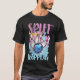 My 11 yo wore adult XL (5’7” 165#). The 8yo is small framed. She wore adult small and tied it in the back. Grandma wore adult large with long sleeve shirt underneath. Tall girl adult medium. Dark haired male adult large. Good quality dark Heather gray, Gildan brand shirt. -it was next up from basic choice and cost about $20 per shirt. Not too thick or thin. Washed and dried well, no major shrinkage. Not see-through. Can wear a bra under it fine. Screen print is just as shown and well done, front and back.