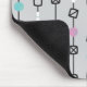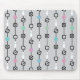 Mousepad with Bowling Stripes print on grey background. Stripes with scored boxes, bowling pins, and star patterned bowling balls.