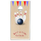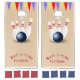 Fun Cornhole game set done in a Bowling theme, with graphics of a bowling ball and pins, with colorful pennant banner, at the top. Red text reads Bowl-a-rama Cornhole, and can be changed to read what you want. Great for all ages and occasions.