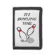 Bowling pings with words saying it's bowling time makes a nice wallet.