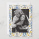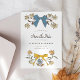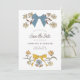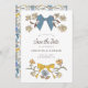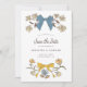 Elegant and coquette save the date card featuring hand drawn illustration of bows and flowers in blue and yellow colors. You can add a photo on the back.
