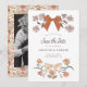Elegant and coquette save the date card featuring hand drawn illustration of bows and flowers in earth tone terracotta colors. You can add a photo on the back.