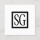 A square business card template with initials placed inside a 1.25in square with a bold 3mm frame. In this version the initials are in the Integrity bold font. Name and profession/job title along with telephone, email and website address in black on the reverse side on a white background, using variations of the Matt Antique font.