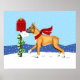 This Fawn Boxer strolls in the snow to take his Holiday Greetings to the mailbox wearing his red knitted scarf. Christmas artwork from Danes-R-Us will bring a smile to any dog lover's face this season.