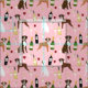 Boxer Dog and wine pink Fabric