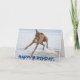 Cute, funny boxer dog playing in the sea greetings card. Text on front reads "Happy birthday!" and text inside reads "Hope you have a great day!"