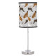 The lamp looks exactly like the picture, bright and colorful. The lamp shade is plastic not what I expected, however I love it! The printing is clear and the name can easily be read.