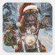 Boxer Dog Riding Motorcycle Christmas Square Sticker