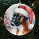 Boxer Dog Santa Hat Christmas Ceramic Ornament