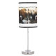 The lamp looks exactly like the picture, bright and colorful. The lamp shade is plastic not what I expected, however I love it! The printing is clear and the name can easily be read.