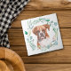 An watercolor portrait of a brown and white Boxer Dog inside a blue green leaf wreath is the feature on this decorative and useful tile. Perfect for any one who loves a Boxer.