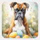 Boxer Dog with Easter Eggs Holiday Square Sticker