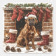 Bring some Christmas magic with this adorable Boxer sticker, showing the dog in a Santa hat sitting by a cozy fireplace. Stockings hung above, pine cones, and Christmas lights complete the holiday charm. Isolated and ready to bring festive cheer to your space!