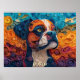 This is an abstract colorful dog portrait of a Boxer breed dog in paper quilling art style. It is a lovely poster for dog lovers and Boxer owners.
