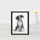 Send some Boxer love to friends and family. This cute canine card features a black and white photo of a Boxer puppy dog highlighted against a crisp white background with an black border.