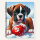 Boxer Puppy Playing With a Red Ball in a Winter Notebook