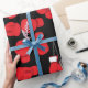 Boxing fans will love this sporty gift wrap featuring a red boxing gloves pattern on black