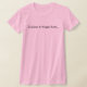 My overall review is that the T-shirt is nice, it fits true to size however the font is significantly smaller than advertised and you can't read it. The printing is unreadable and there is a strain to read it. It does not look like the advertised product. Maybe the shirt color is darker or a larger more visible font should have been used. Photos with and without flash and font is barely legible.