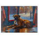A heartwarming holiday scene featuring a dog sitting peacefully beside a window, surrounded by glowing Christmas lights. This cozy and festive design captures the spirit of the season, perfect for adding warmth and charm to any space. Ideal for dog lovers and holiday decor enthusiasts.
