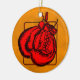Digital image of a pair of red boxing gloves shaded and outlined in black. The gloves are partially framed by a reddish black outline in the shape of a square.Stylish design. Background is a golden yellowish watercolor design giving it a suede/leathery texture.