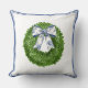 Boxwood Wreath with Blue Toile Bow Throw Pillow