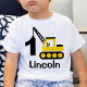 Boy 1st birthday t-shirt with construction crane and number 1. Personalize it by adding your child's name!