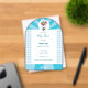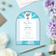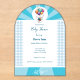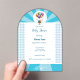 Cheerful baby shower Acrylic invitation with white and blue color. Topped with a flying baby carried in balloons. A beautiful keepsake of the most beautiful occasion