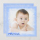 Blue polka dot frame to place your child's photo for boy adoption announcement.