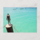 A color landscape photo of a small boy looking in to the beautiful turquoise water`s of the caribbean