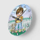 Boy and Dog Clock by ArtMuvz Illustration. Matching cute dog lover apparel and dog breeds gifts. To personalize add your name or add text instead. Customize this Boy and Dog Clock to make it uniquely yours or to give as a personalized gift