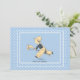 A sweet party invitation with a touch of nostalgia. The blue and white polka dot pattern frames a little tot on a stick horse, dressed as a cowboy. (Freevector.com - playing boy). The card is easy to customize with your wording, font, font color, paper shape options and choice of six paper types.