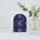 A cute baby boy shower invitation on a pale blue cloudy and starry sky with a dark blue arch enclosing a little blue elephant.