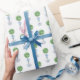 Boy Baby Shower Topiary Bow Blue White Planter Wrapping Paper