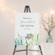A cute boy baby shower welcome sign designed with watercolor art by Victoria Grigaliunas. This sign features a colorful tropical fish with rainbow colors, starfish and ocean botanicals in shades of turquoise, blue and green. To see the entire baby shower theme visit www.zazzle.com/dotellabelle