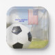 Boy Ball on Field American Flag Soccer Birthday Paper Plates