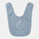 Boy Baptism Cross Crest Elegant Dusty Blue Silver Baby Bib