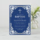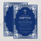 Boy Baptism Elegant Royal Blue Faux Silver Cross Invitation