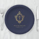 Boy Baptism Navy Blue Faux Gold Crest Religious Paper Plates